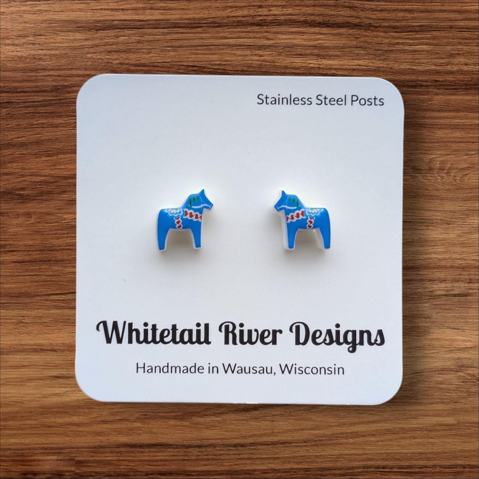 Blue Dala Horse Acrylic Post Stud Earrings with Stainless Steel Posts
